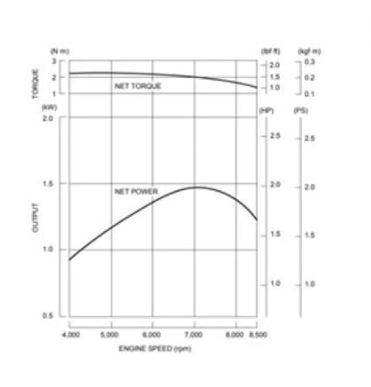 2.0 HP (1.47 kW) @ 7,000 rpm