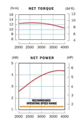 4.8 HP (3.6 kW) @ 3,600 rpm