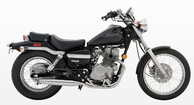 Who says you need a big-bore machine to appreciate the joys of motorcycling? Not a Honda Rebel rider, that's for sure. A user-friendly combination of light weight and comfortable size has made the CMX250C Rebel an enduring favourite among riders looking for an easy-to-handle cruiser. The good stuff begins with a high-output twin-cylinder engine that runs more smoothly than a single, yet is thrifty on gas and easy to maintain. A front disc brake brings you to a halt quickly, and that's when you'll notice how easy it is to put your feet flat on the ground, thanks to a low seat height. This is a bike that instills confidence on every ride.