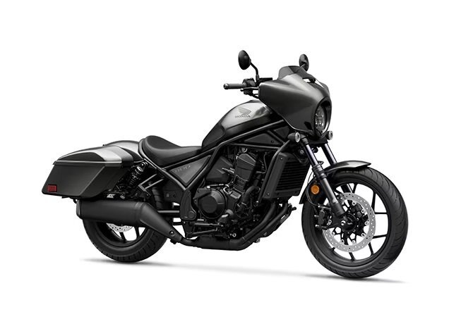 Setting it apart from the Rebel 1100, the Rebel 1100 Touring comes standard with a large headlight cowl and windscreen. The Touring model also comes with saddlebags which are perfect for packing for a weekend getaway.