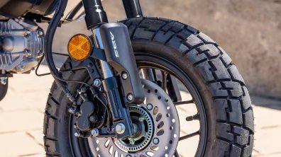 The Monkey’s high-aspect-ratio tires mounted on 12-inch cast wheels do more than just look cool. They’re super practical too, giving you plenty of grip and absorbing bumps on rough road surfaces.