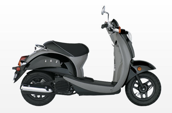 Wait till your friends catch sight of you on your new Honda Jazz! With its quiet and dependable four-stroke engine, electric start, automatic transmission and light weight, the Jazz is a blast to ride, whether you're heading to the corner store or all the way downtown and back. It's so light and easy to handle that putting it up on its centrestand or squeezing it into a tight parking spot is absolutely no sweat at all. A huge storage area under the seat swallows up schoolbooks, a laptop, or a full-face helmet. Want to look your best? Hop on a Honda Jazz