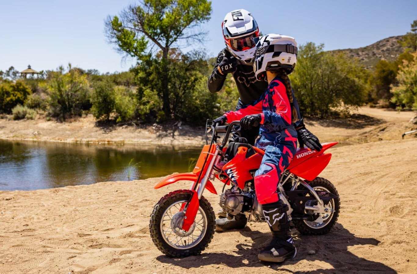 The CRF50F is designed to fit young riders. The low seat height, lightweight design and small-size control levers will help your young rider build confidence right from the start.
