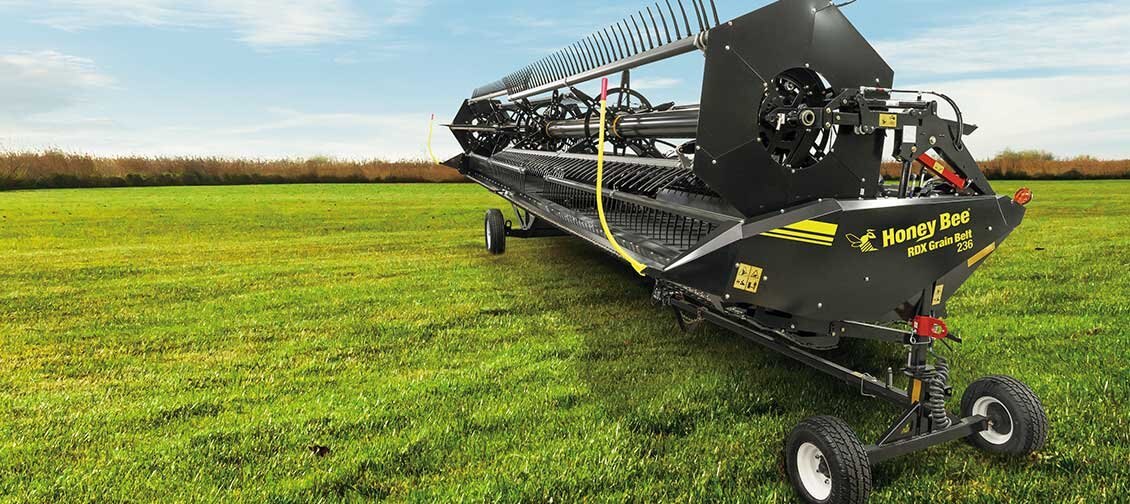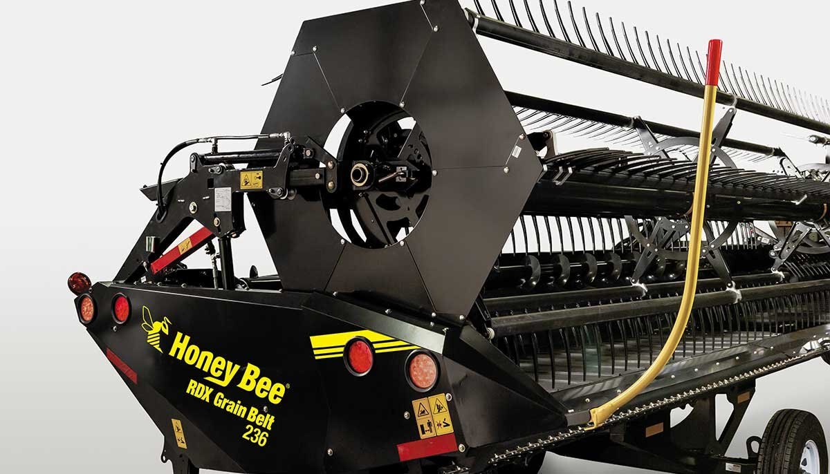 A Rigid Draper Header Design That's Cutting EdgeThe RDX Grain Belt is changing the future of the rigid draper header industry. By starting with the popular AirFLEX design, our team of Honey Bee engineers achieved a rigid, single platform draper header that’s faster than ever before. We’ve reduced hydraulic components, increased the size of the feeder house to add feeding capacity, moved the knives closer to the ground for a super low cut, and added a mechanical drive for simplicity and power. The Honey Bee RDX Grain Belt: More power when you need it. |