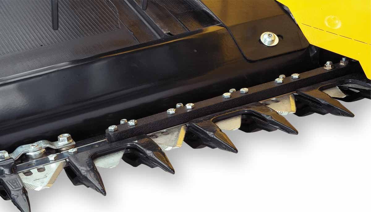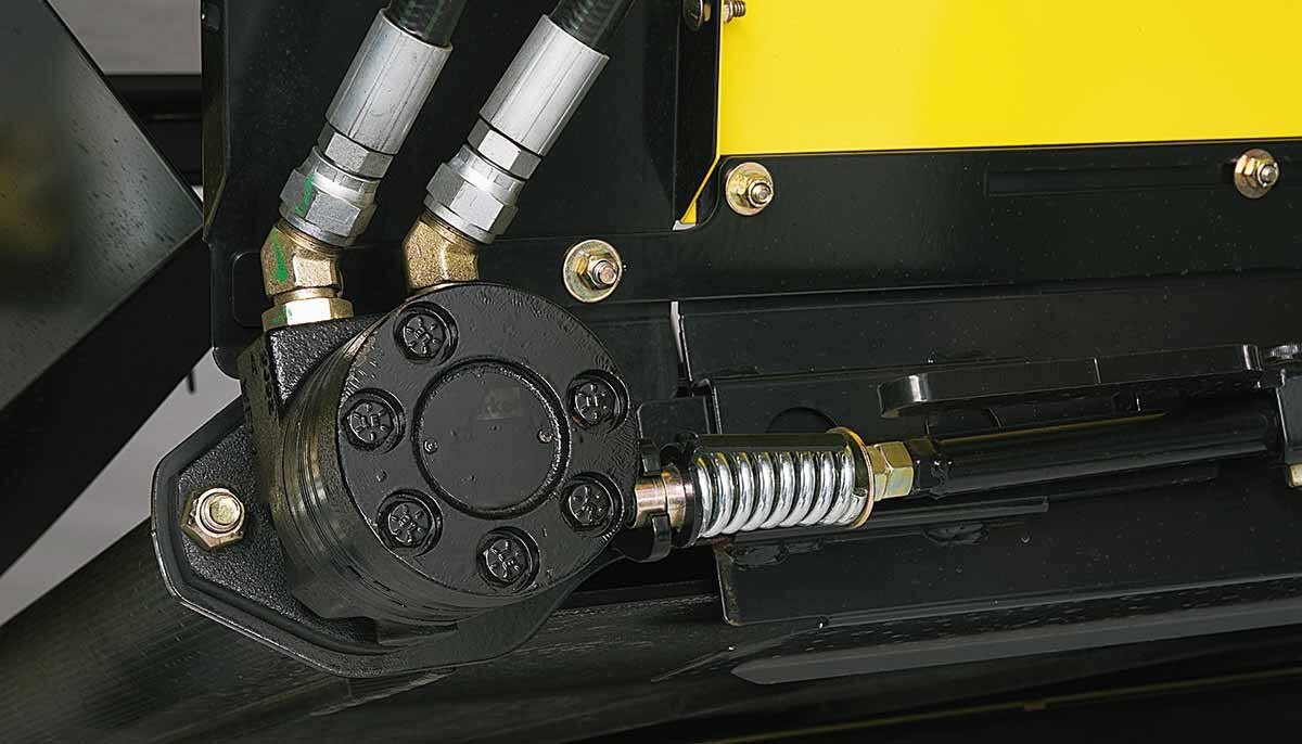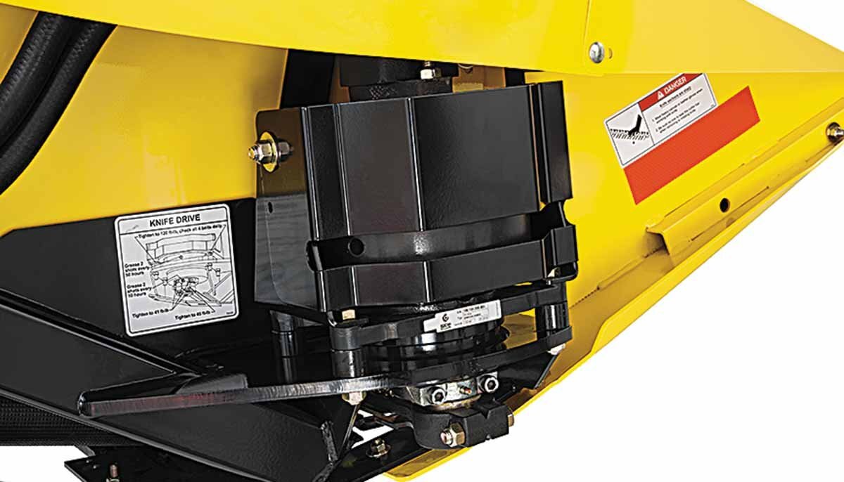 The knife is driven by a 35 /16” (8.4 cm) stroke epicyclic knife drive that operates at 1,400 strokes per minute. The knife drive is driven by a low maintenance hydraulic drive motor. Double knife drive systems are standard equipment on 15′, 21′, 25′, 30′ and 36′ models. |