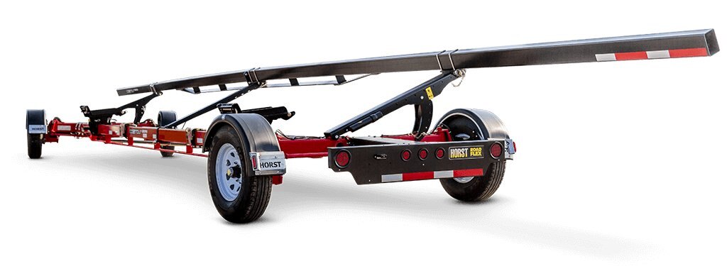 Tapered roller bearings on king pins for absolute no sway trailing Includes 2 tool free configurable universal pads 2 Ratchet straps to secure load 4 Wheel steering 4 Wheel electric brakes 4 Wheel independent suspension 18 ft. wheelbase with reinforced bottom rail 235/85 R16 (F Range) Highway trailer tire on 16 x 6 x 8 rim Wheel Fenders Running lights on fenders and rails Light kit (Red Lenses) 2-5/16 ball hitch and safety chains Vehicle Identification Number for Licensing † Double Spring Tongue Balancer Length adjustable hitch with auto lock for simple hook up