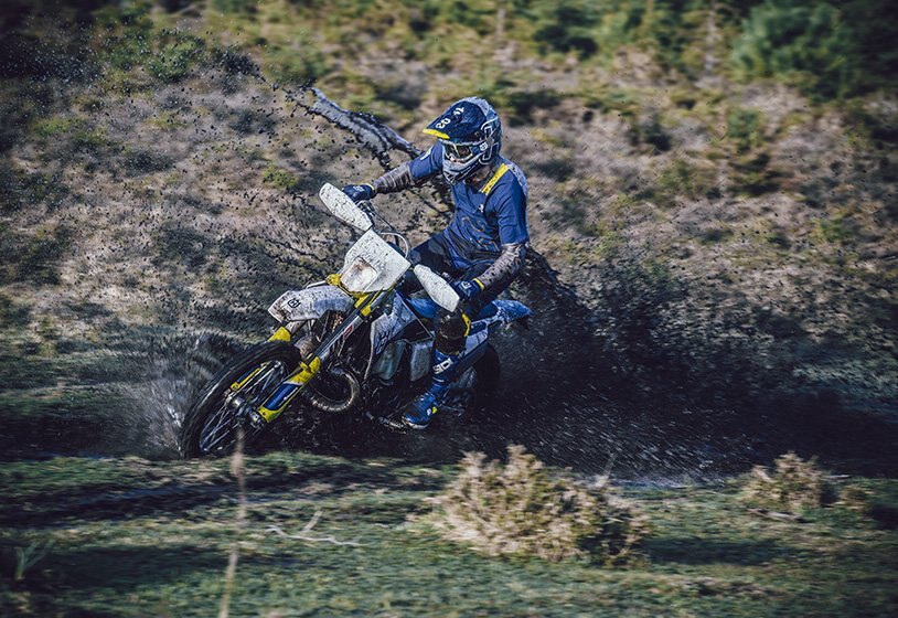 The TE 250i features a bodywork which clearly showcases Husqvarna Motorcycles' progressive approach to offroad motorcycles while striking dark blue and electric yellow graphics stylishly adorn the Swedish inspired design. The ergonomics are specifically tailored to deliver great comfort and control. As a result of extensive testing, the slim contact points make shifting between riding positions easier and allow the rider to flow with movement. The flat seat profile, together with the seat cover texture, deliver superior comfort and control in all conditions.