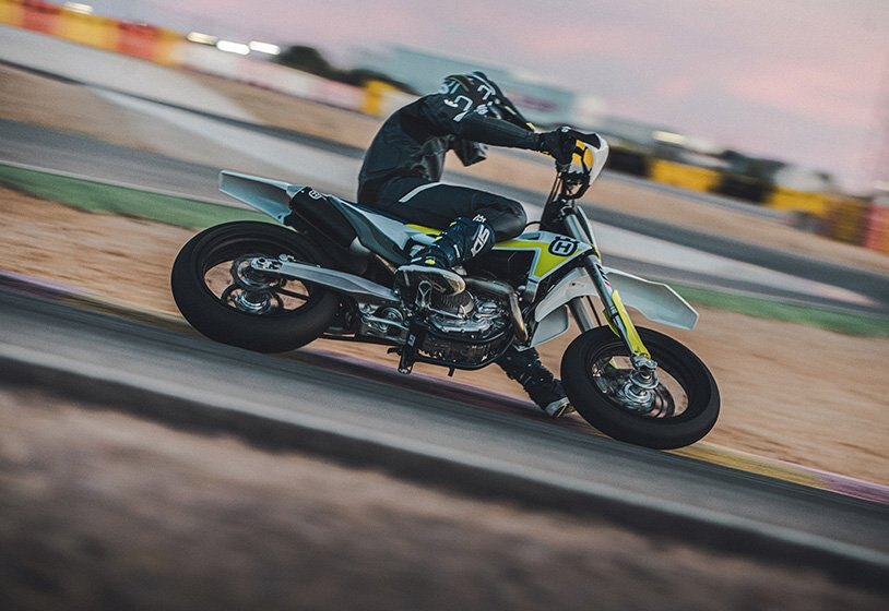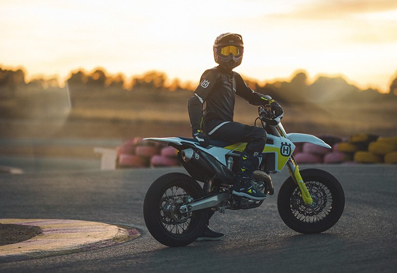 The pinnacle of Husqvarna supermoto competition, the FS 450 uses advanced engineering techniques to not only draw 63 hp from the 450cc motor, but also position the engine closer to the centre of gravity to vastly improve handling and manoeuvrability. The addition of launch control means perfect acceleration off the line, while class-leading ergonomics and traction control keep the rider in full control.