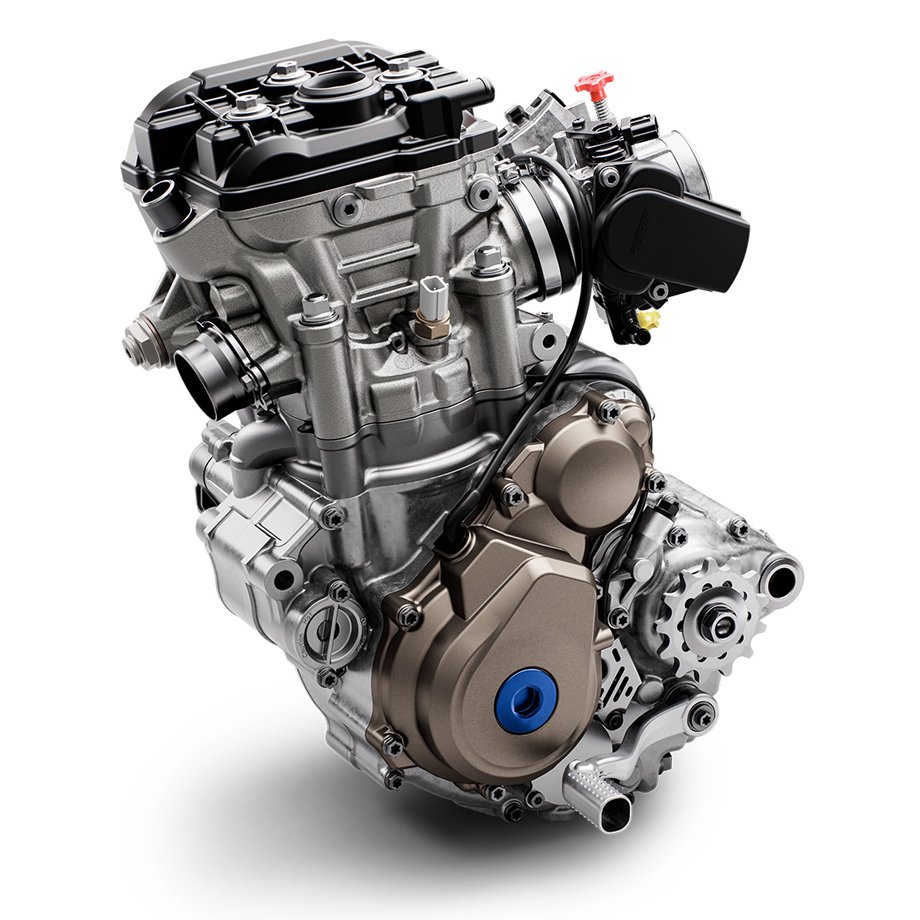Engineered to ensure class-leading performance and handling characteristics, all major engine components and shaft arrangements are carefully positioned closer to the center of gravity to reduce the effects of rotational inertia. The 250cc 4-stroke engine is also light, tipping the scales at only 26.1 kg (57.5 lb), but is also remarkably powerful.