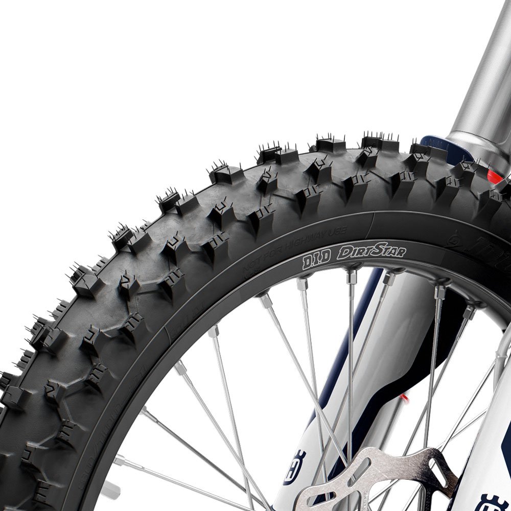 Made from high-strength alloy rims by D.I.D and featuring CNC-machined hubs, the wheels of the FC 450 are fitted with DUNLOP MX33 Motocross tyres with proven "block-within-a-block" design for more progressive cornering and superior grip.