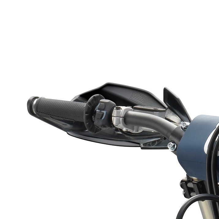 The combined engine start/stop switch is located on the right side of the handlebar for easy, thumb-operated use. Not only simplifying the starting and stopping of the engine, but the removal of an additional stop only button from the handlebar reduces the risk of potential damage or activation in the event of a fall.