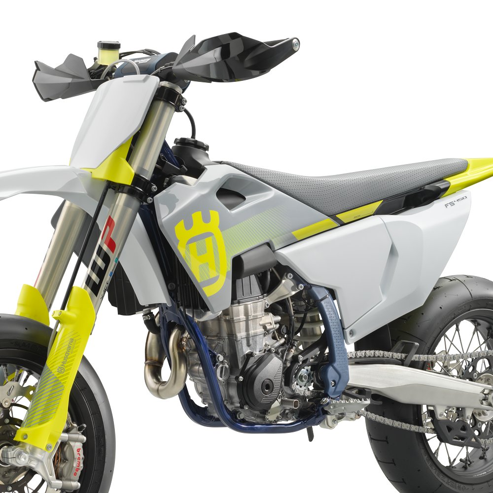 Delivering pure short circuit performance, the FS 450 is undoubtedly the machine of choice for all serious Supermoto racers. With an incredibly versatile SOHC engine that produces a broad spread of controllable power, the internal shaft arrangements are placed at the ideal centre of gravity to vastly benefit manoeuvrability. Aiding this agile feel is the lightweight chassis. Manufactured using innovative engineering techniques, the frame design ensures exceptional handling. Retaining its customisable electronics and assembled with high-quality components throughout, the FS 450 is finished with new white, yellow, and grey graphics inspired by the brand's Swedish heritage.