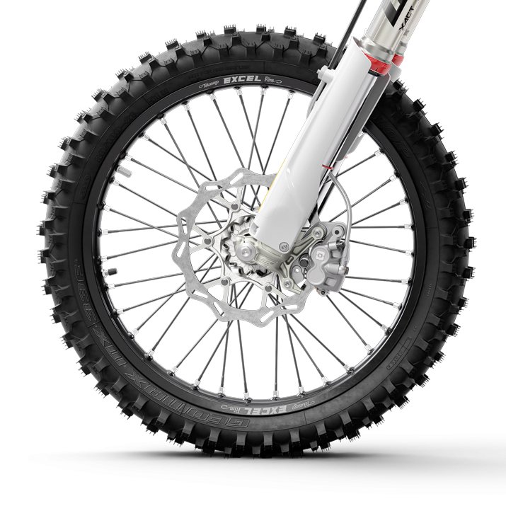 CNC-machined hubs and high-strength alloy rims by EXCEL are finished in striking black. They feature laser engraved logos and are fitted with a DUNLOP GEOMAX MX33 tyre on the front and DUNLOP GEOMAX AT81 tyre on the rear which ensure progressive cornering and superior traction on a variety of terrain.
