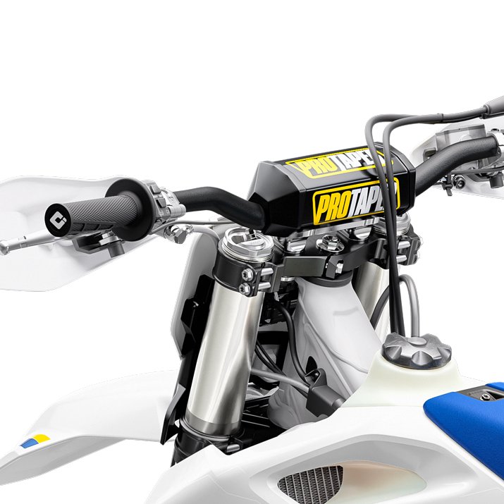 Developed between Husqvarna Motorcycles and leading handlebar manufacturer, ProTaper, the exclusive bend offers superior comfort, class-leading strength, and fatigue resistance at the lowest possible weight. Fitted to the handlebar as standard are our open handguards for added protection in the demanding offroad environments. On top sits the black ProTaper handlebar pad adding style and safety.