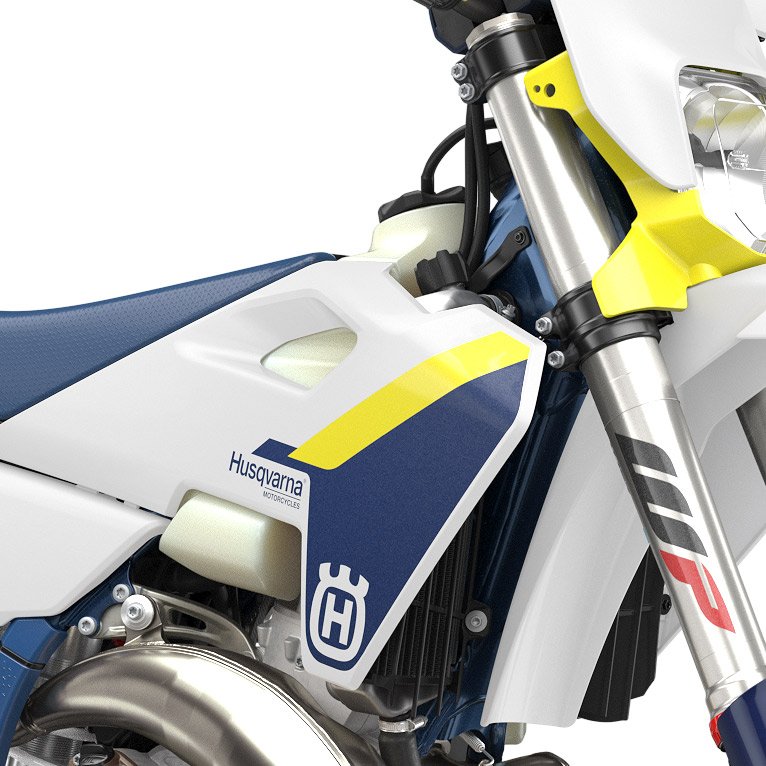 BodyworkAdorned with clean, Swedish-inspired graphics, the bodywork is designed to allow riders to perform at their best for extended periods of time. A flat seat profile offers unrestricted movement with a new, high grip cover ensuring riders stay firmly in place under hard acceleration. Above the side panels, recessed pockets allow for the machine to be lifted and moved, which is particularly beneficial for those competing in extreme enduro events. |