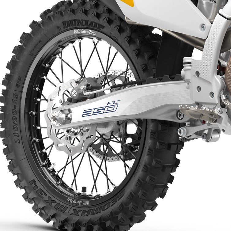 The new FC 350 engine is designed to deliver maximum performance. For 2023, the repositioning of all major engine components and shaft arrangements enhances overall handling with the design improving anti-squat behaviour from the whole chassis. Weighing just 59.9 lb (27.2 kg), the 350 cc 4-stroke engine is tilted two degrees backwards and is 8 mm shorter in height to further centralise mass.