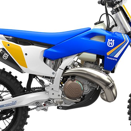 | Multiple technical updates for 2025 ensure the versatile TX 300 Heritage maintains its place at the head of its class. A new, lighter frame is engineered to improve handling, especially when entering corners, without sacrificing straight-line stability. Accompanying the new chassis are revised settings to the WP suspension, which help maintain maximum comfort and traction across the roughest terrain. The compact, 300 cc 2-stroke engine retains its electronic exhaust control for instant power delivery in every gear. Inside the engine, all components are positioned to centralise rotating mass, which plays a vital role in the outstanding agility that the TX 300 is known for. Movement on the motorcycle remains unrestrictive thanks to the slightly taller and wider seat with the ergonomic bodywork and new radiator shrouds complete with distinctive, Swedish-inspired graphics. |