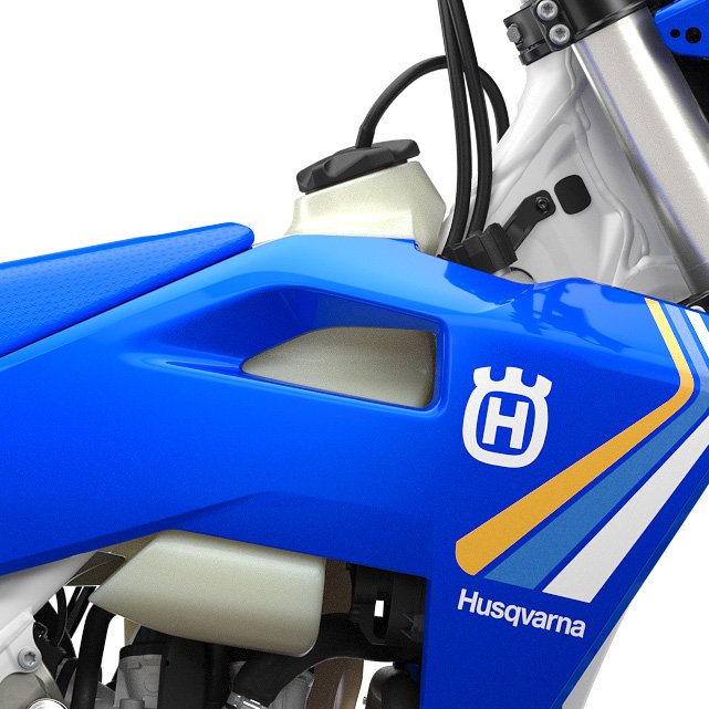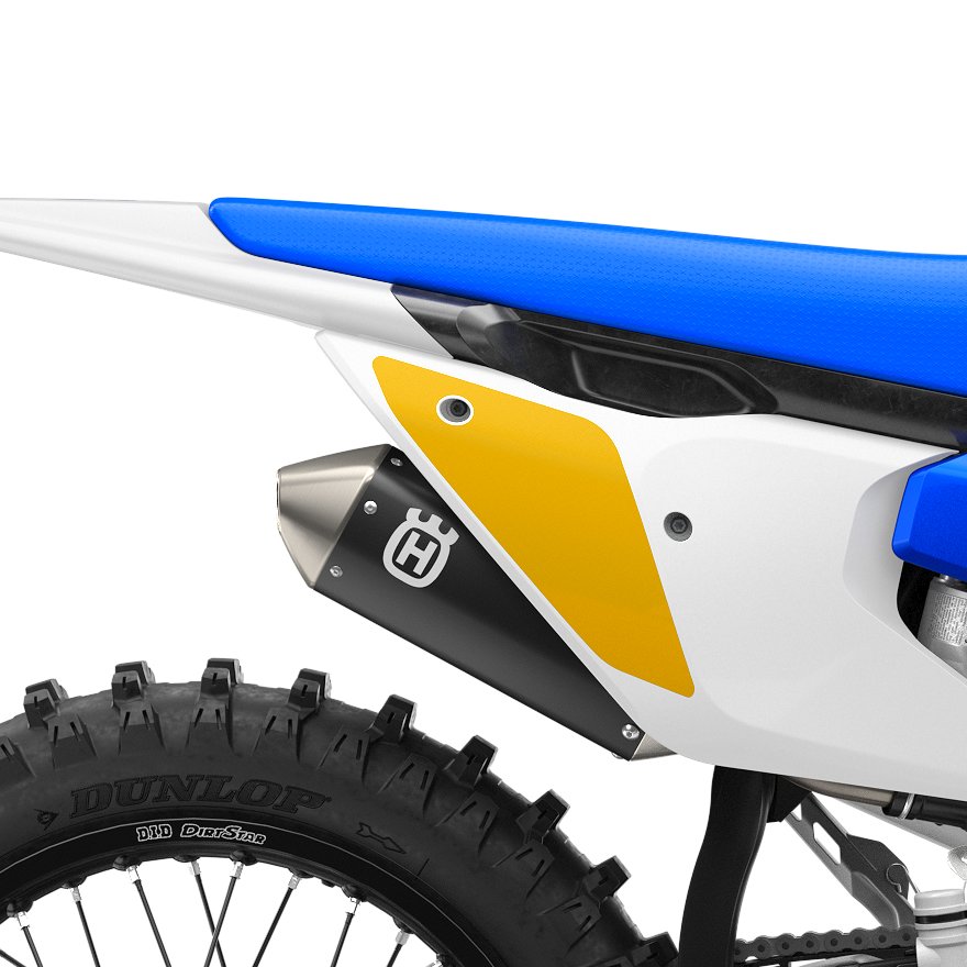 The bodywork clearly showcases Husqvarna Motorcycles' progressive approach to offroad motorcycles while the Swedish heritage-inspired blue and yellow graphics create a distinctive look. The ergonomics are tailored to deliver exceptional comfort and control, enabling riders to perform at their best for extended periods of time. Adapted after countless hours of testing, the contact points have been repositioned for 2023 and together with a flatter seat profile, riders can move freely on the motorcycle for total control at all times. |