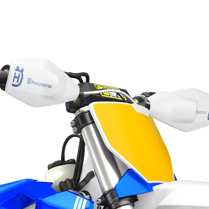 Developed between Husqvarna Motorcycles and leading handlebar manufacturer, ProTaper, the exclusive bend offers superior comfort, class-leading strength, and fatigue resistance at the lowest possible weight. Fitted to the handlebar as standard are our open handguards for added protection in the demanding offroad environments. On top sits the black ProTaper handlebar pad adding style and safety. |