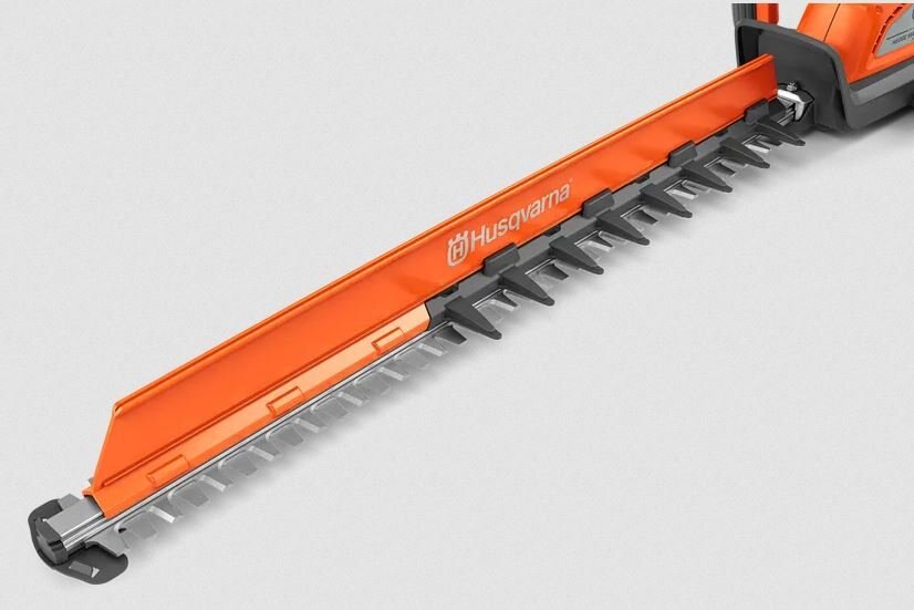 Deliver 30% more reach* for increased comfort and control *When compared to the leading competitor’s 56V hedge trimmer with 25-in steel blade that does not include tri-handle grips. |