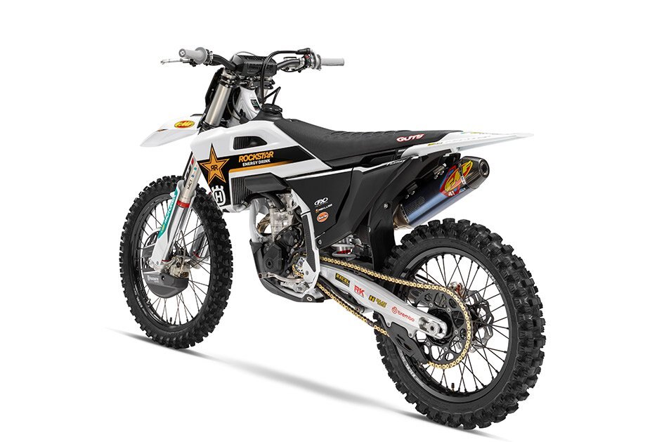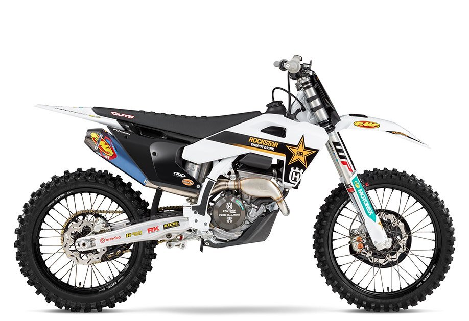 | New for 2024, the FC 250 Rockstar Edition provides serious racers with a machine designed and built for winning. A competition-focused evolution of the class-leading FC 250, the new model is enhanced with multiple electronic rider aids and the very best Technical Accessories to deliver the ultimate on-track performance. Quality, race-tested components including an FMF silencer, Dunlop tires, and the latest WP XACT suspension underlines the premium specification of the new machine that is complete with the latest Rockstar Energy Husqvarna Factory Racing graphics. |