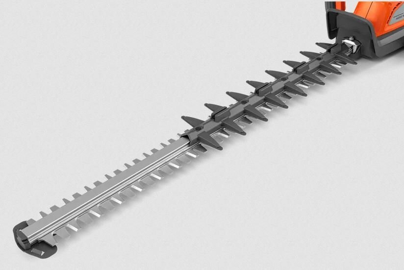 Deliver 30% more reach* for increased comfort and control *When compared to the leading competitor’s 56V hedge trimmer with 25-in steel blade that does not include tri-handle grips. |