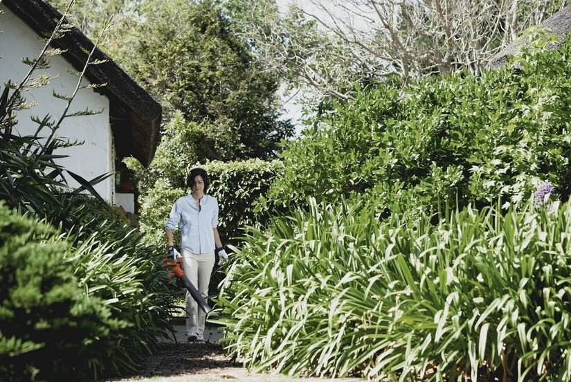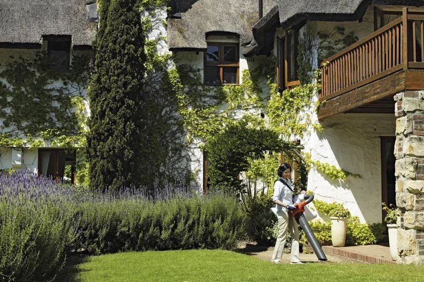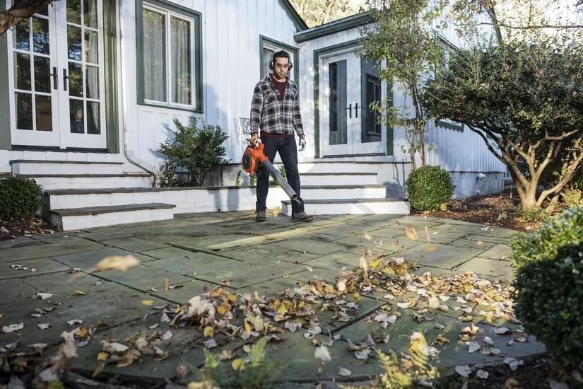 Turn the blower into a mulching lawn vacuum to easily break down and collect debris