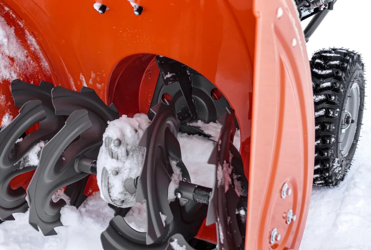 High-quality auger feeds snow into impeller fan for easy and efficient clearing