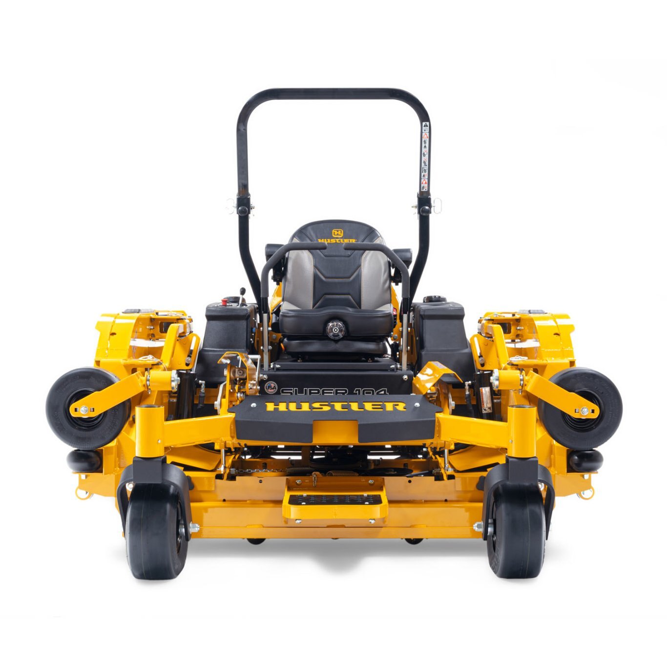Hustler's Super 104™ can easily handle acres of work. Offering a 104" width of cut, zero-turn precision and up to an impressive 11 mph speed, this machine is in a class by itself.