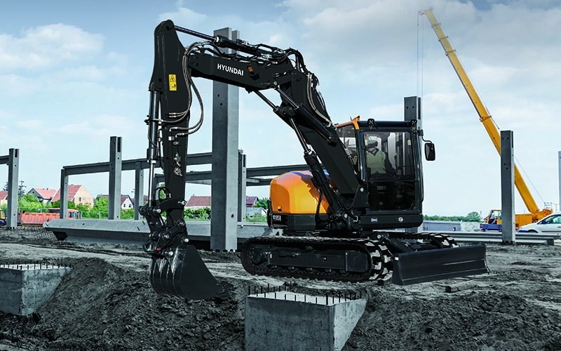 | The new Hyundai HX85A model is the company’s first compact excavator included among the A-Series machines, and the first to be designated an HX model number. The largest of Hyundai’s compact excavator models, the HX85A fills a transitional spot in its overall excavator product line between the compact and full-sized models. It features a Tier 4 Final engine that provides impressive performance and reduced fuel consumption. You’ll appreciate the hefty power, durability and reliability of this compact machine, along with its ability to work productively in confined spaces. |