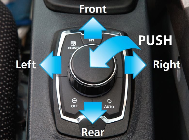 Haptic control is a common technology found on luxury automobiles that makes selecting menus and adjusting settings easy. The haptic remote control uses vibrations and pulses to guide the operator through menu selections, enabling control of the accelerator, air conditioner, and all functions within the cluster for maximum convenience. |