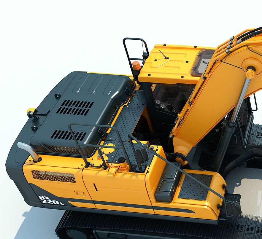 HX series excavators are equipped with large grab rails, guard rails and a proprietary anti-slip surface on the upper structure that make accessing key service areas easier and safer. |