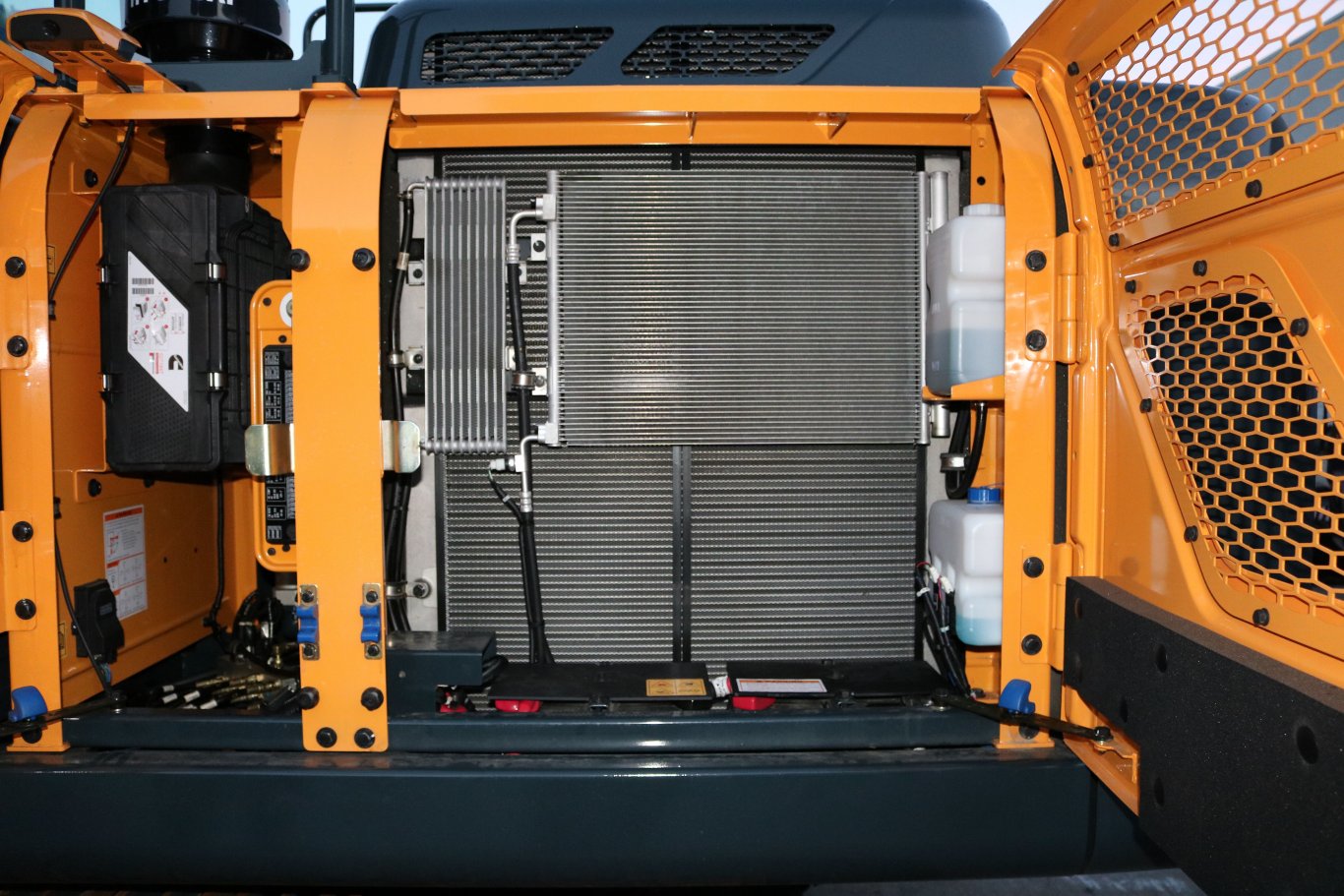 A-Series HX excavators feature aluminum open-core coolers mounted in a stacked configuration to improve air flow, enhance cooling efficiency and improve serviceability. |