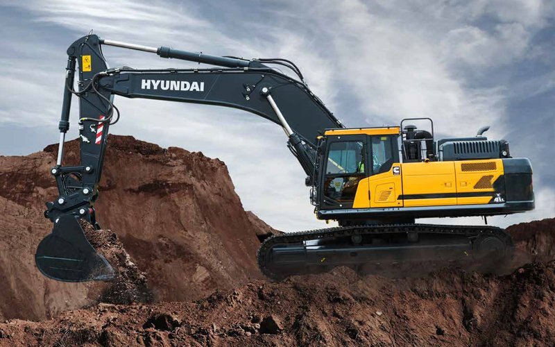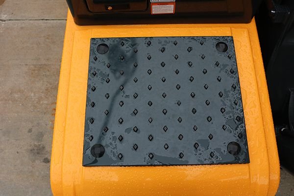 Hyundai's proprietary, patented anti-slip surface uniquely designed to prevent accidental slips and falls that can result in injury when working or inspecting the upper structure of the machine. The rubber tread surface is less abrasive on knees when kneeling and performing inspections. |