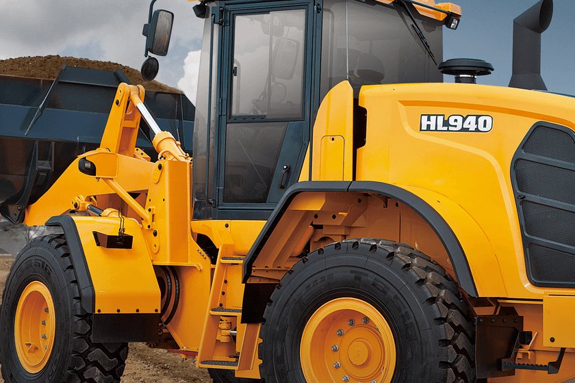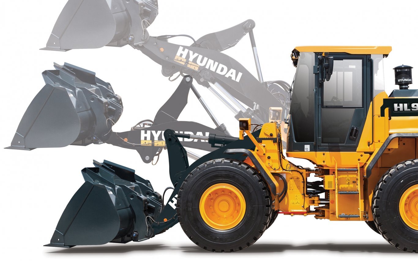 Cabs on the Hyundai HL900 series wheel loaders are all about operator comfort and control. They’re up to 10-percent larger than previous models, and offer additional floor space and improved visibility. In-cab sound levels are more than 2 dB lower, making this one of the quietest cabs in the industry. New cab comfort convenience features in the A-Series include: Foldable Side Mirror, Fully Adjustable Seat and Armrest, Air Compressor, Ride Control Enhanced, and Enhanced Weighing System, Remote Control Door (option) and Auto Greasing System (option.) |