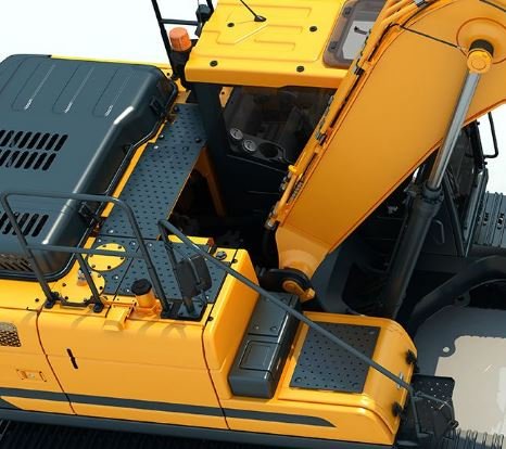 Hyundai's proprietary, patented anti-slip surface uniquely designed to prevent accidental slips and falls that can result in injury when working or inspecting the upper structure of the machine. The rubber tread surface is less abrasive on knees when kneeling and performing inspections.