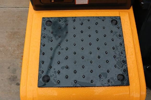 Hyundai's proprietary, patented anti-slip surface uniquely designed to prevent accidental slips and falls that can result in injury when working or inspecting the upper structure of the machine. The rubber tread surface is less abrasive on knees when kneeling and performing inspections.