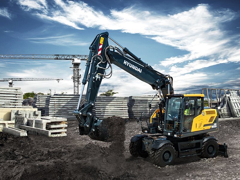 The Hyundai wheeled excavator product line includes three HW series models and one 9A series compact model to give you an edge in a wide range of on-road and off-road applications. These Tier 4-Final-compliant wheeled excavators deliver improved performance, increased fuel efficiency, superior travel speeds on the road, an enhanced cab and added safety features.