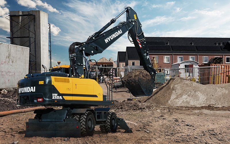 The Hyundai wheeled excavator product line includes three HW series models and one 9A series compact model to give you an edge in a wide range of on-road and off-road applications. These Tier 4-Final-compliant wheeled excavators deliver improved performance, increased fuel efficiency, superior travel speeds on the road, an enhanced cab and added safety features.