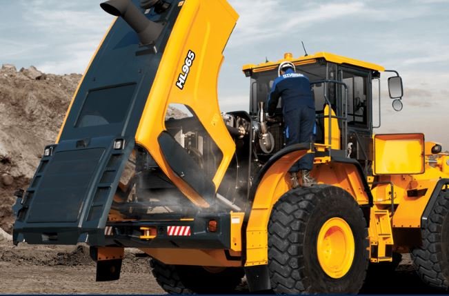 The HL900 series has improved accessibility to the sealed engine room with a tilt-back hood to allow for easy cleaning and maintenance. The engine compartment was designed to prevent any possibility of fire due to contamination. The wide open access when the hood is open also enhances serviceability of the engine and cooling room.