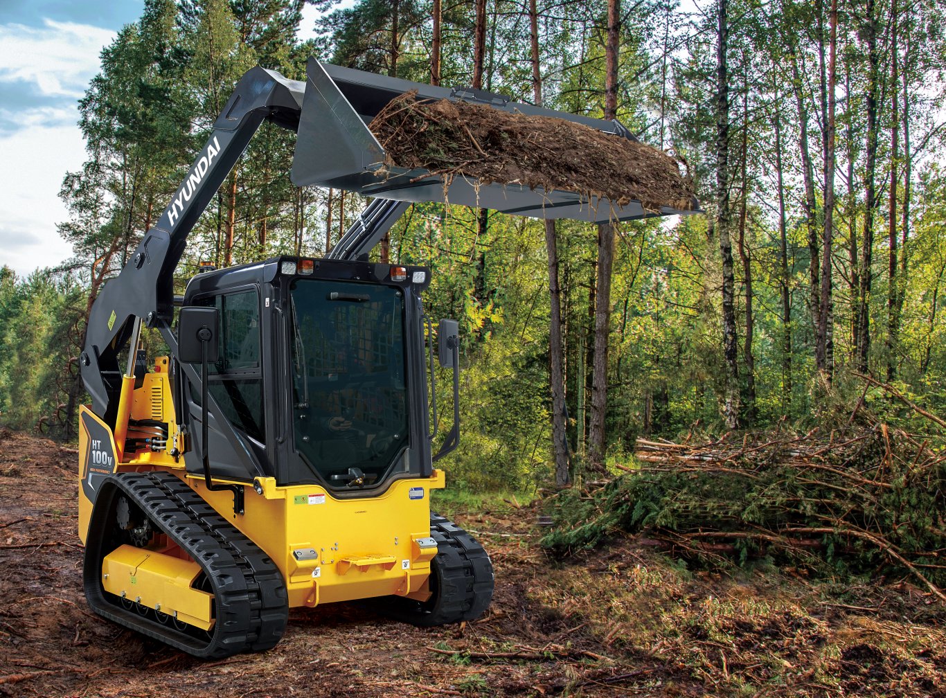 Hyundai currently offers one compact track loader, the HT100V. Powerful and affordable, this machine is fully featured, built with the reliability and durability, performance, convenience, serviceability and safety features customers expect from Hyundai. The HT100V is powered by a Tier 4 Final-compliant Hyundai engine that delivers minimal emissions while providing excellent fuel efficiency. Whatever your task, whatever the environment, you can rest easy knowing that your Hyundai CTL is backed by our industry-leading 3-year/3,000-hour warranty.