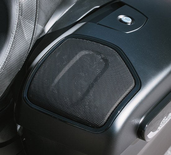 The PowerBand system which features four 100-watt speakers for a total of 400 watts with a dynamic equalizer for an immersive experience, so no matter the riding conditions, you can hear your music. |