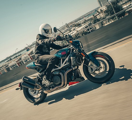 FTR x 100% R Carbon boasts a thoroughly modern American V-Twin, tightly packed into a perfectly balanced street chassis giving nimble, confident handling and a sporty ride like nothing else.