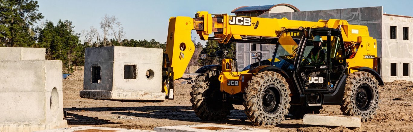 A JCB telescopic handler is extremely maneuverable; the compact wheelbase and large steering lock angles can help to save you valuable travel time on site, especially where space is limited.