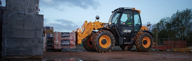 The JCB 531-70 telescopic handler uses a combination of individual hydraulic wheel motors and four-wheel steer for superb maneuverability.