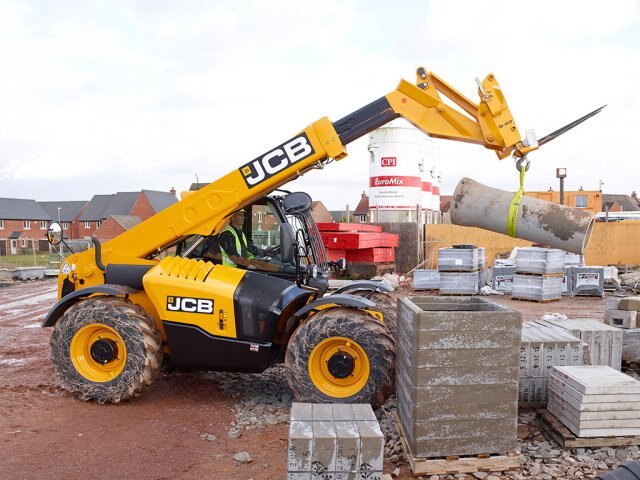 The JCB 541-70 Turbo telescopic handler uses a combination of individual hydraulic wheel motors and four-wheel steer for superb maneuverability.