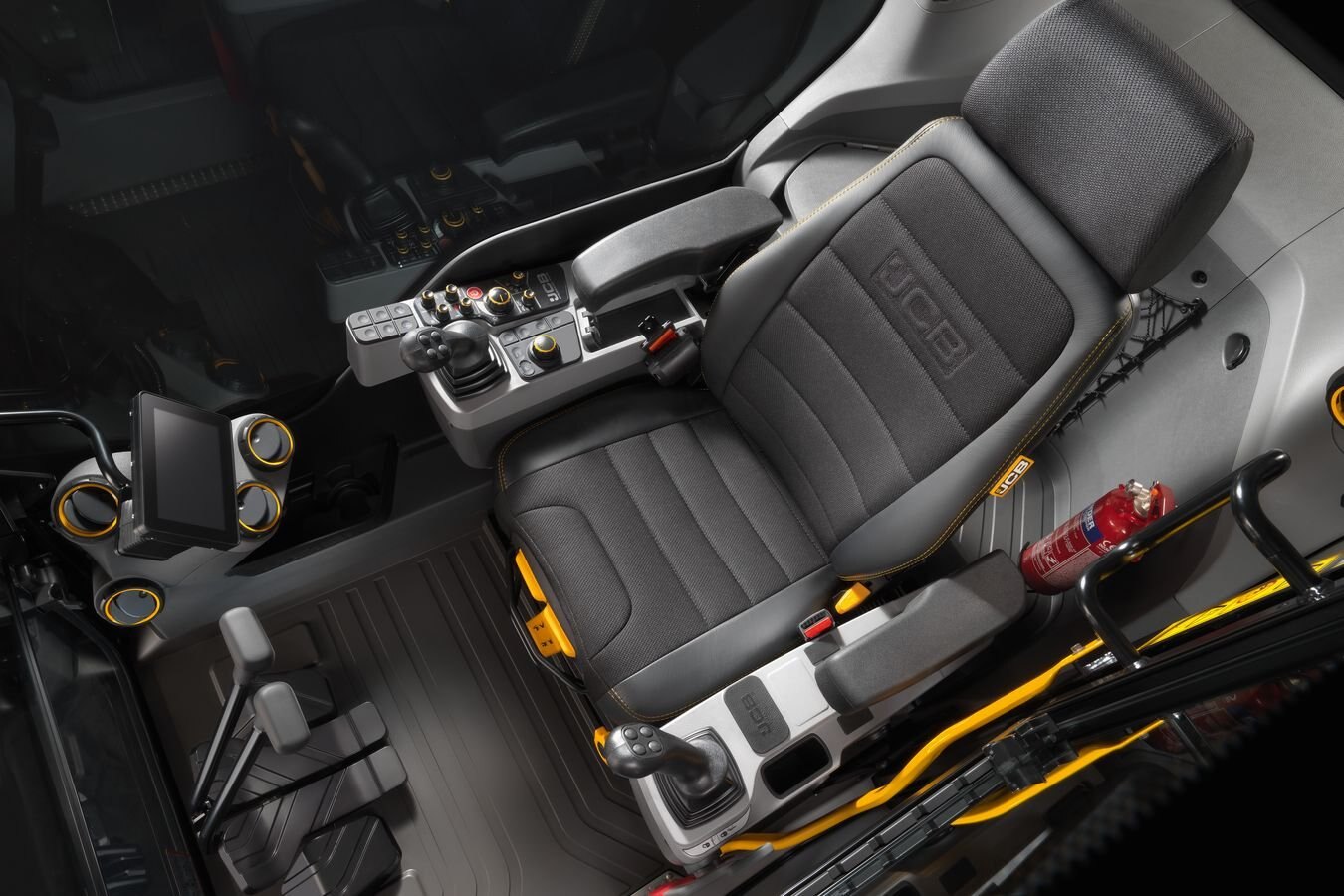 The spacious JCB CommandPlus cab features a high-quality, injection-molded interior. An industry-leading Grammer seat offers wide, adjustable arm rests and 145-degree recline capability.
