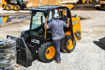 - All JCB skid steer loaders feature a wide-opening side door for safe entry and exit eliminating the need for operators to climb over attachments or under an unsupported boom.