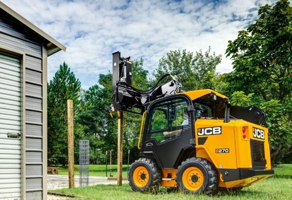 The large-platform, Hi-Viz, JCB 270 skid steer loader provides the operator with excellent visibility to the attachment.