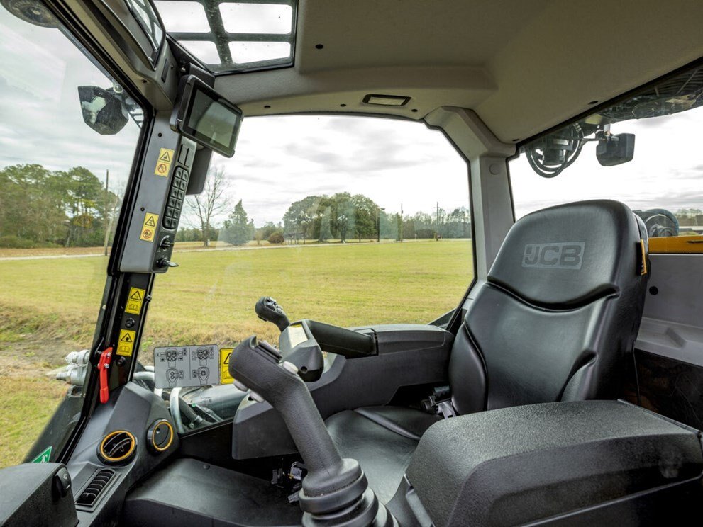 • With the standard fit, fully adjustable, heated, air suspension seat, JCB’s Teleskids are in a class of its own for operator comfort.